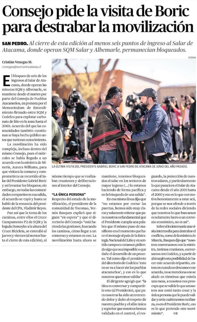 Protestas en Salar de Atacama: SQM suspendió operaciones - (cooperativa online)