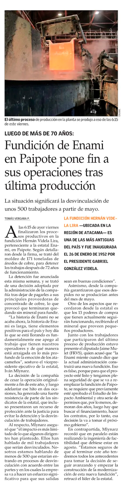 La cronología y testimonios que dejó el cierre anticipado de la fundición Paipote - (El Mercurio de Valparaíso)