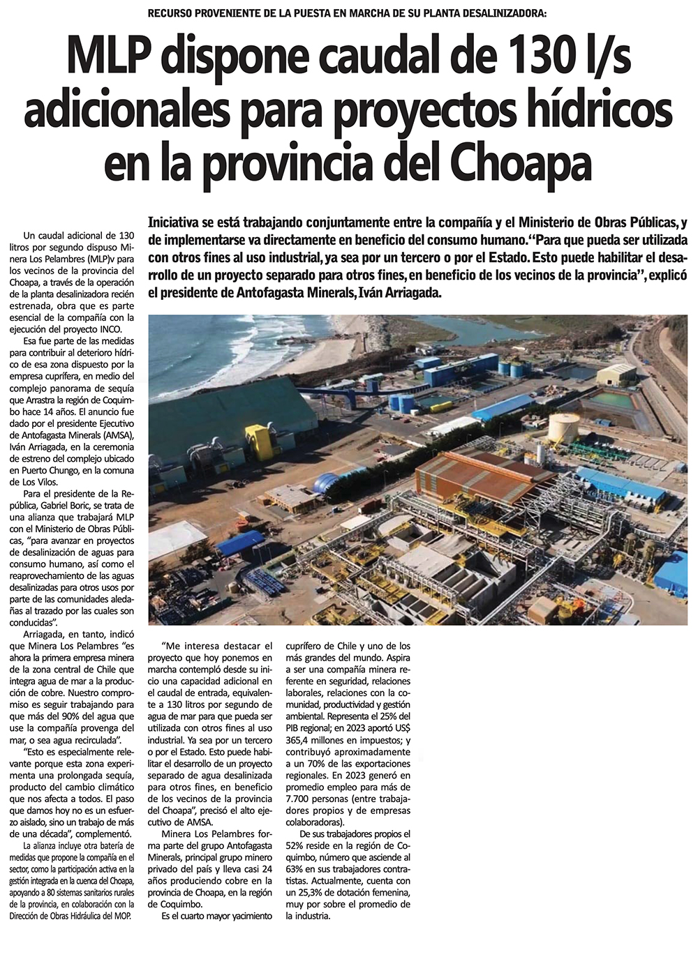 Pelambres anuncia que para 2027 dejará de utilizar agua del río Choapa - (El Día)