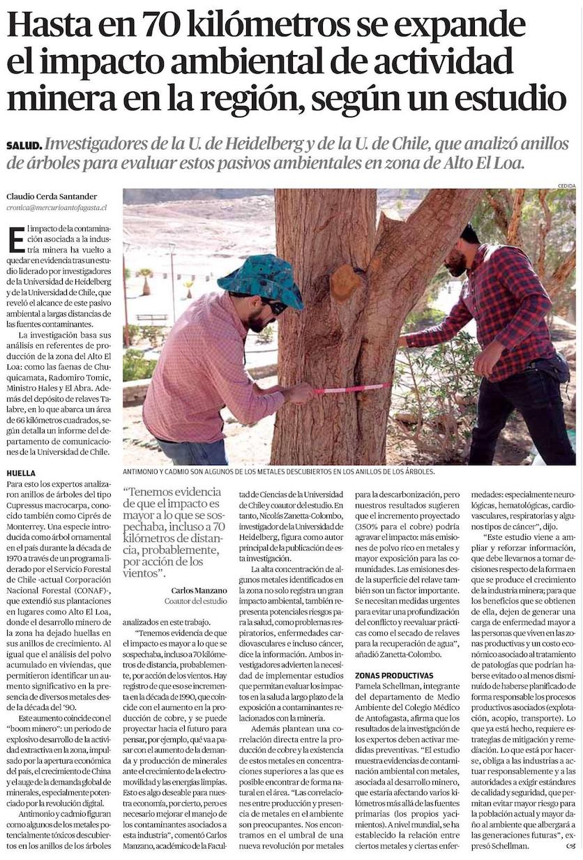 Alerta por estudio que reveló alta concentración de metales tóxicos asociados a minería - (El Mercurio de Antofagasta)