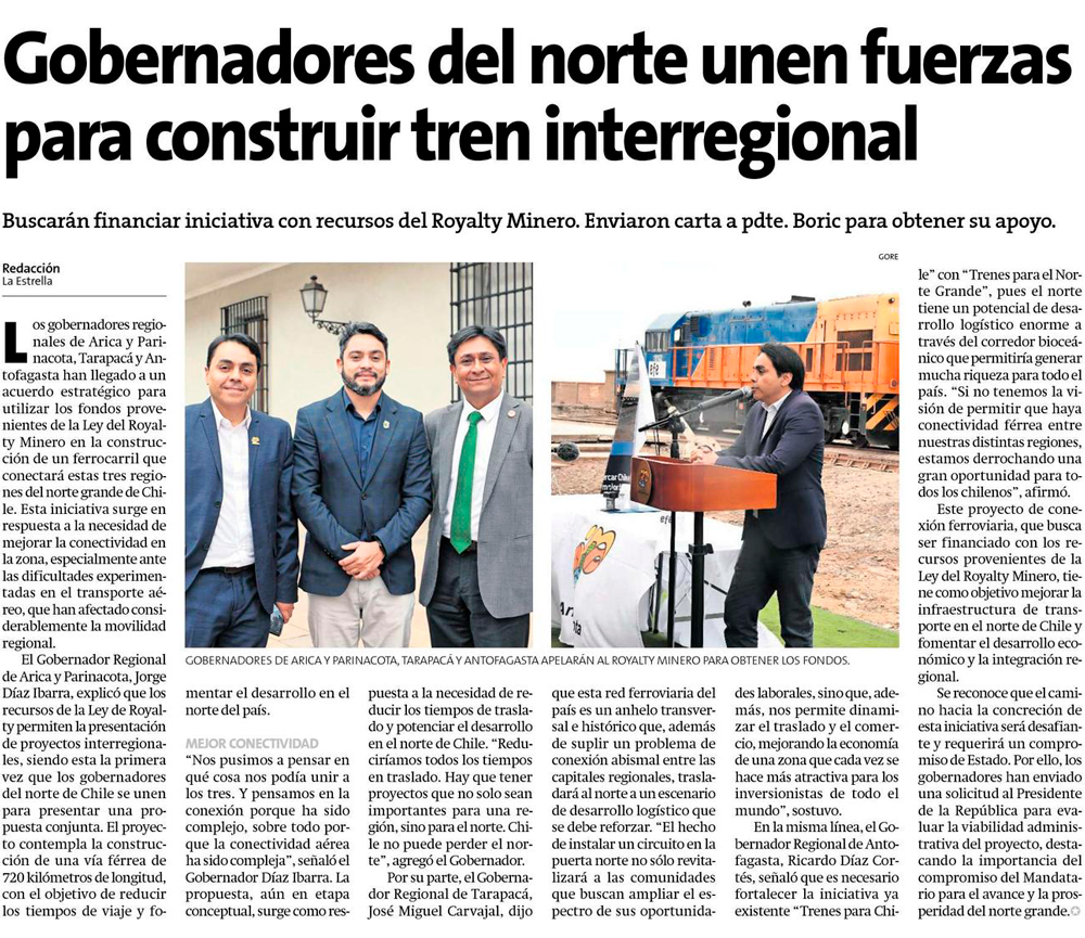 Tren que conecte Antofagasta, Iquique y Arica: Gobernadores del norte piden al gobierno construir un ferrocarril interregional - (timeline)
