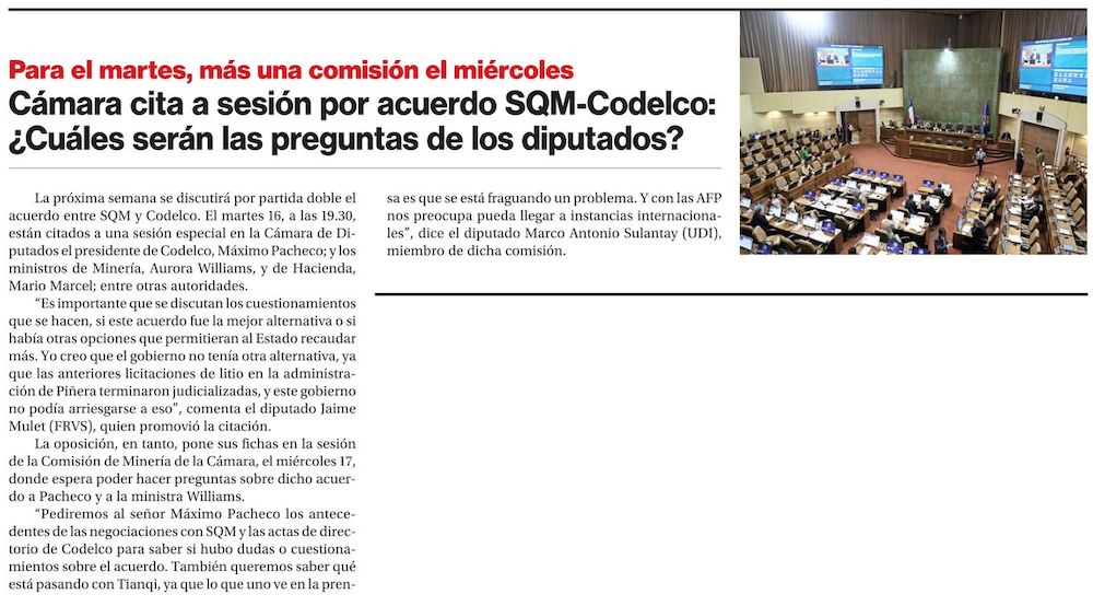 La discusión sobre la alianza SQM-Codelco llega a la Cámara de Diputados - (Pulso)