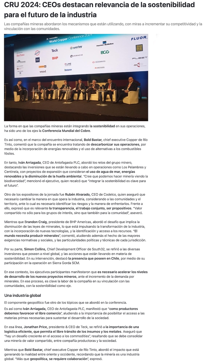 CRU 2024: CEOs destacan relevancia de la sostenibilidad para el futuro de la industria - (mch.cl)
