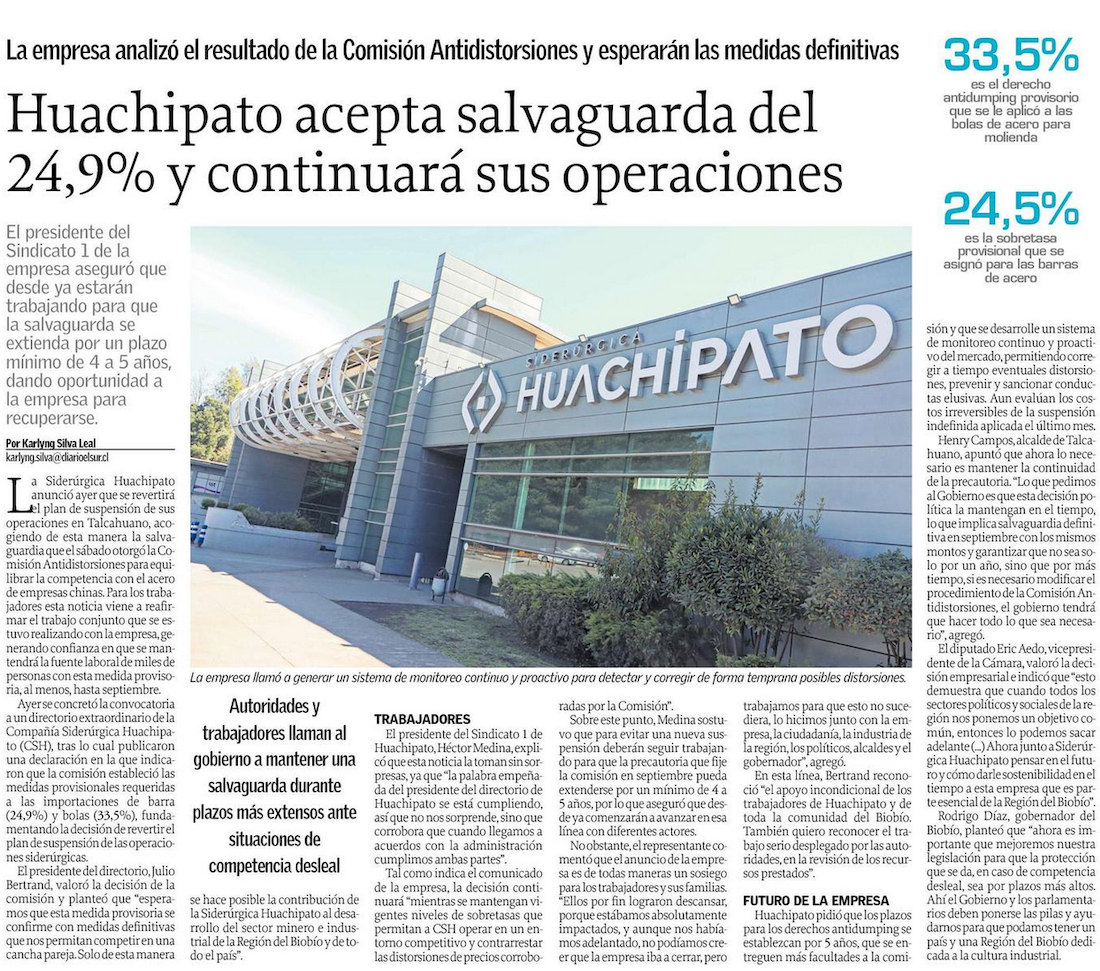 Huachipato: plantean que salvaguardias al acero chino se extiendan por más de un año - (Diario Concepción)