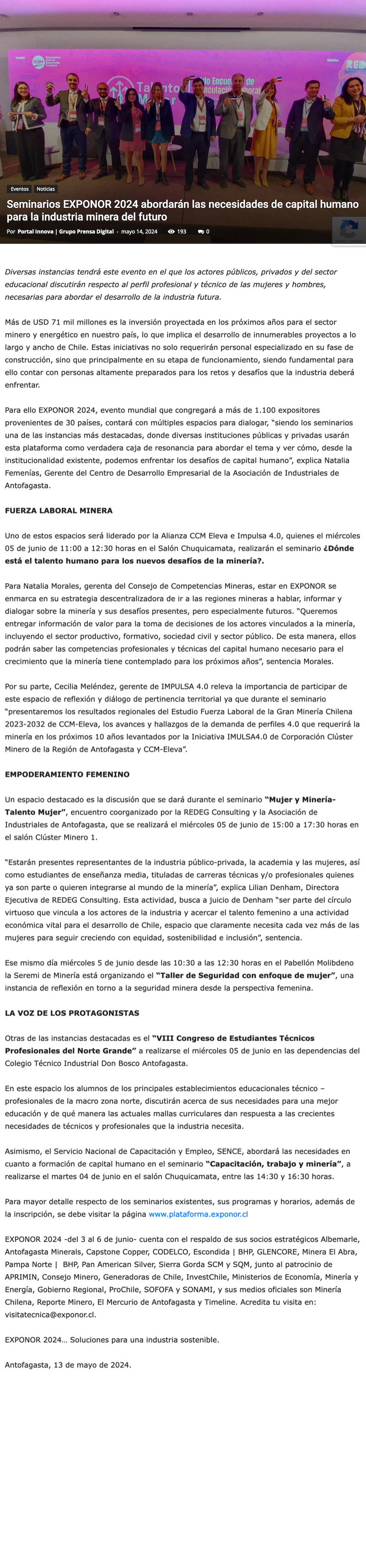 Seminarios EXPONOR 2024 abordarán las necesidades de capital humano para la industria minera del futuro - (mvcomunicaciones.cl)