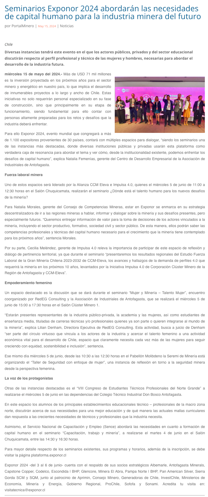 Seminarios EXPONOR 2024 abordarán las necesidades de capital humano para la industria minera del futuro - (mvcomunicaciones.cl)