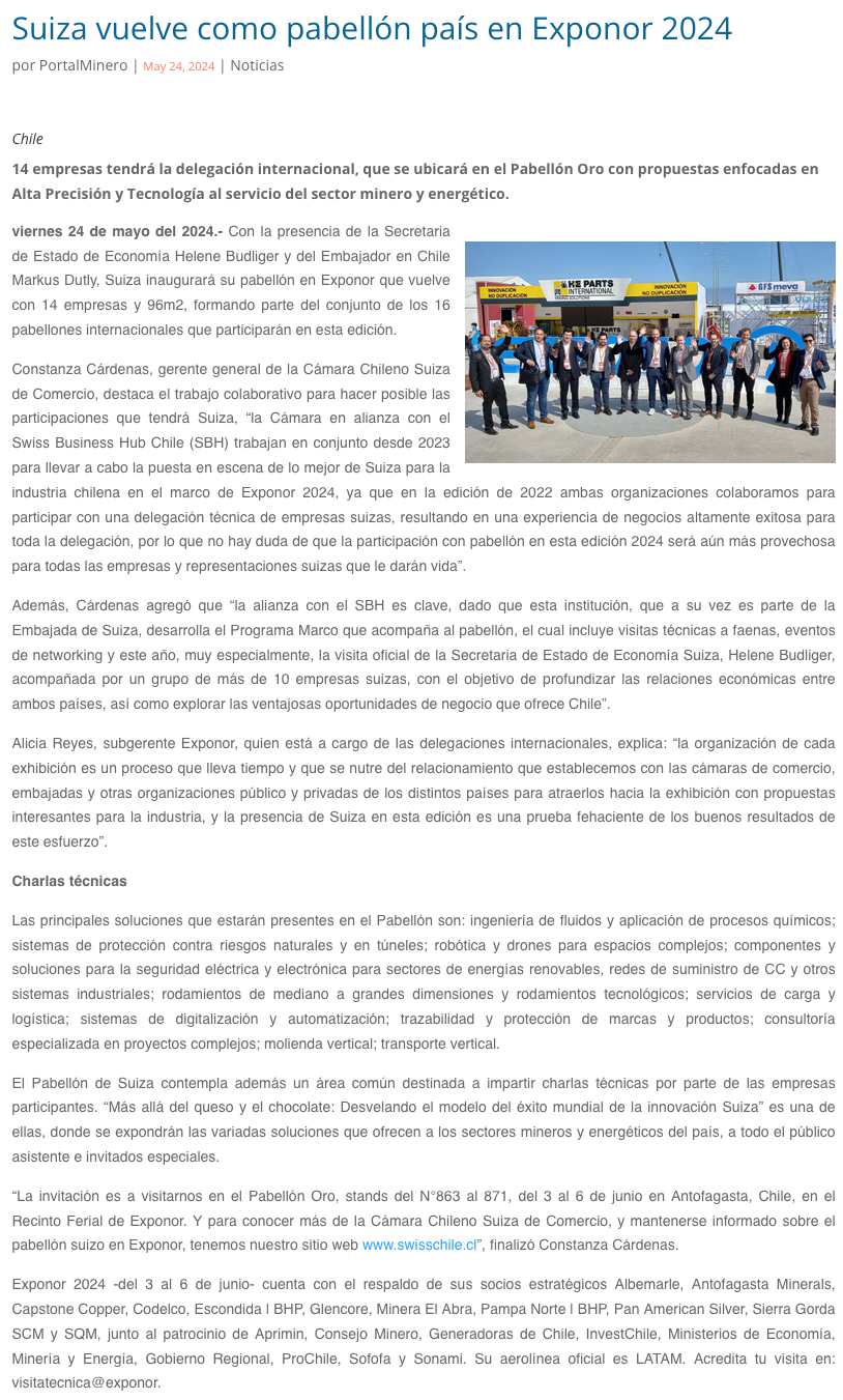 Suiza vuelve como pabellón país en EXPONOR 2024 - (mvcomunicaciones.cl)