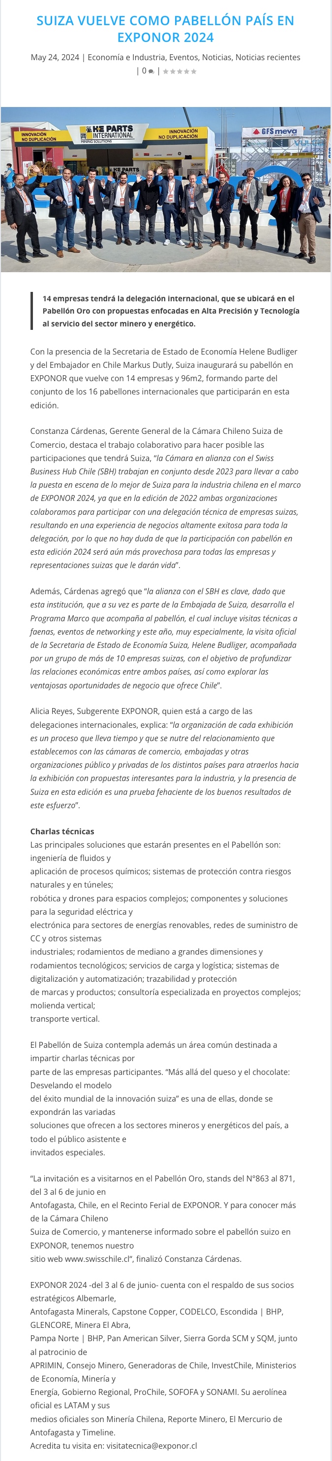 Suiza vuelve como pabellón país en EXPONOR 2024 - (mvcomunicaciones.cl)