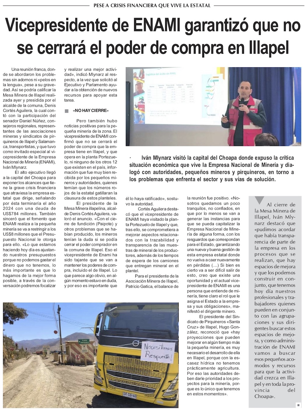 Vicepresidente de ENAMI garantizó que no se cerrará el poder de compra en Illapel - (El Día)