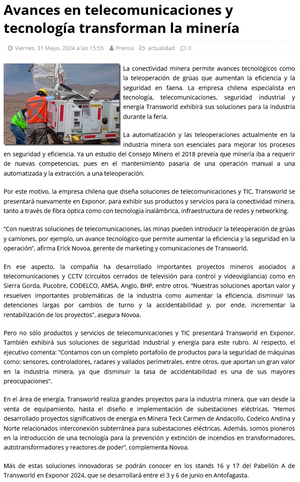 Avances en telecomunicaciones y tecnología transforman la minería - (regionesnoticias.cl)