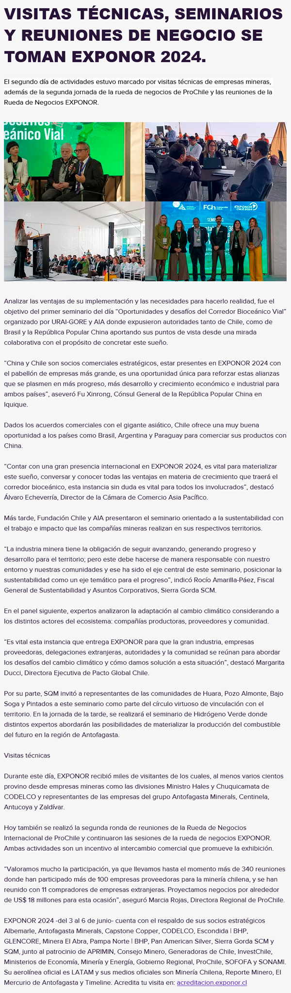 Visitas técnicas, seminarios y reuniones de negocio se toman Exponor 2024 - (mch.cl)