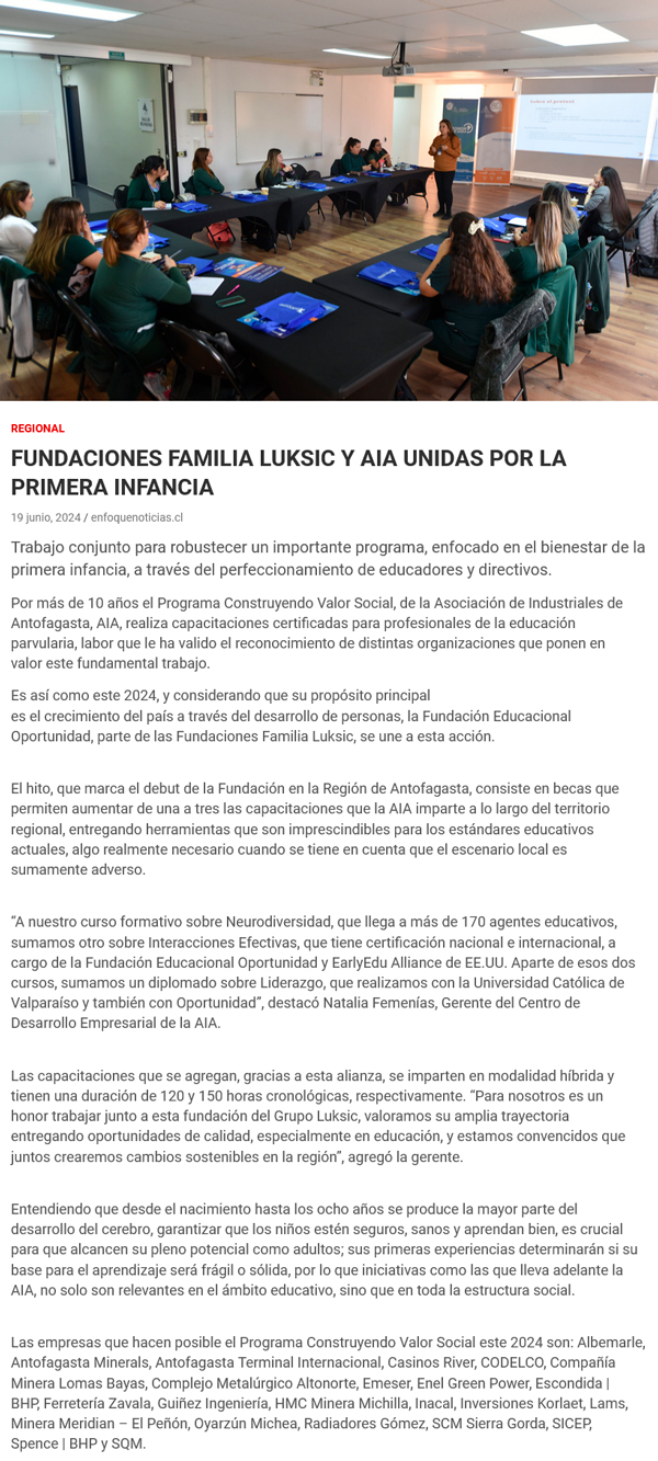 Fundaciones Familia Luksic y AIA inician actividades por la primera infancia en Antofagasta - (soyantofagasta)