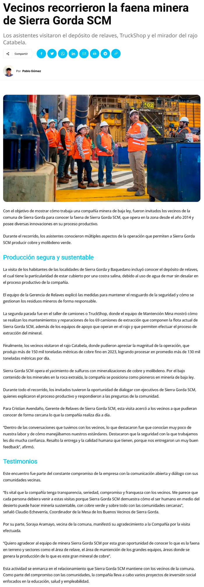 Vecinos recorrieron la faena minera de Sierra Gorda SCM - (enfoquenoticias.cl)