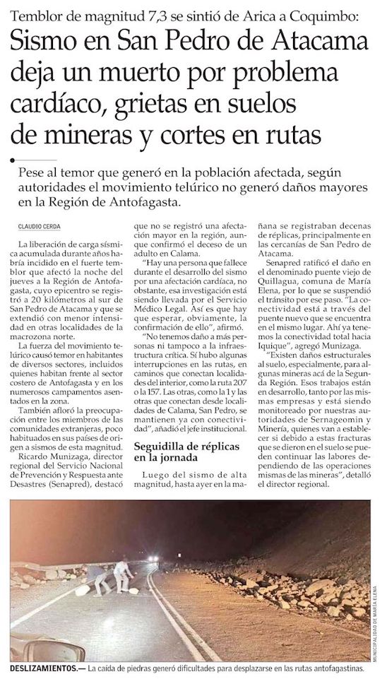 Terremoto se sintió en todo el norte de Chile y en el extranjero - (La Estrella)