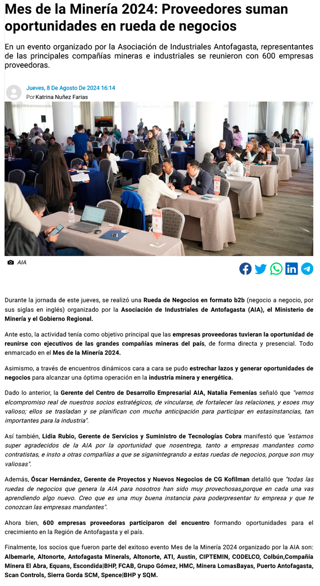 Proveedores suman más oportunidades de negocios en rueda del Mes de la Minería 2024 - (mvcomunicaciones.cl)