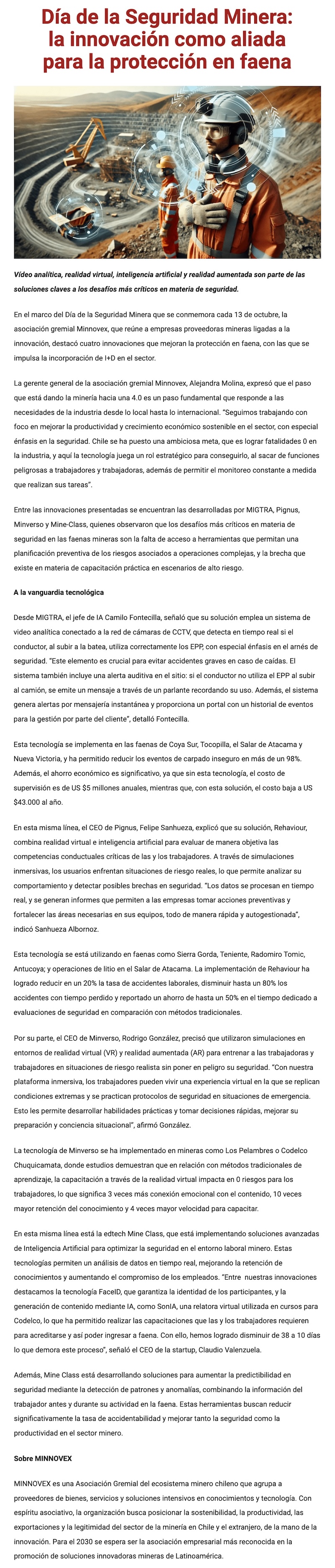 Día de la Seguridad Minera: La innovación como aliada para la protección en faena - (reporteminero)