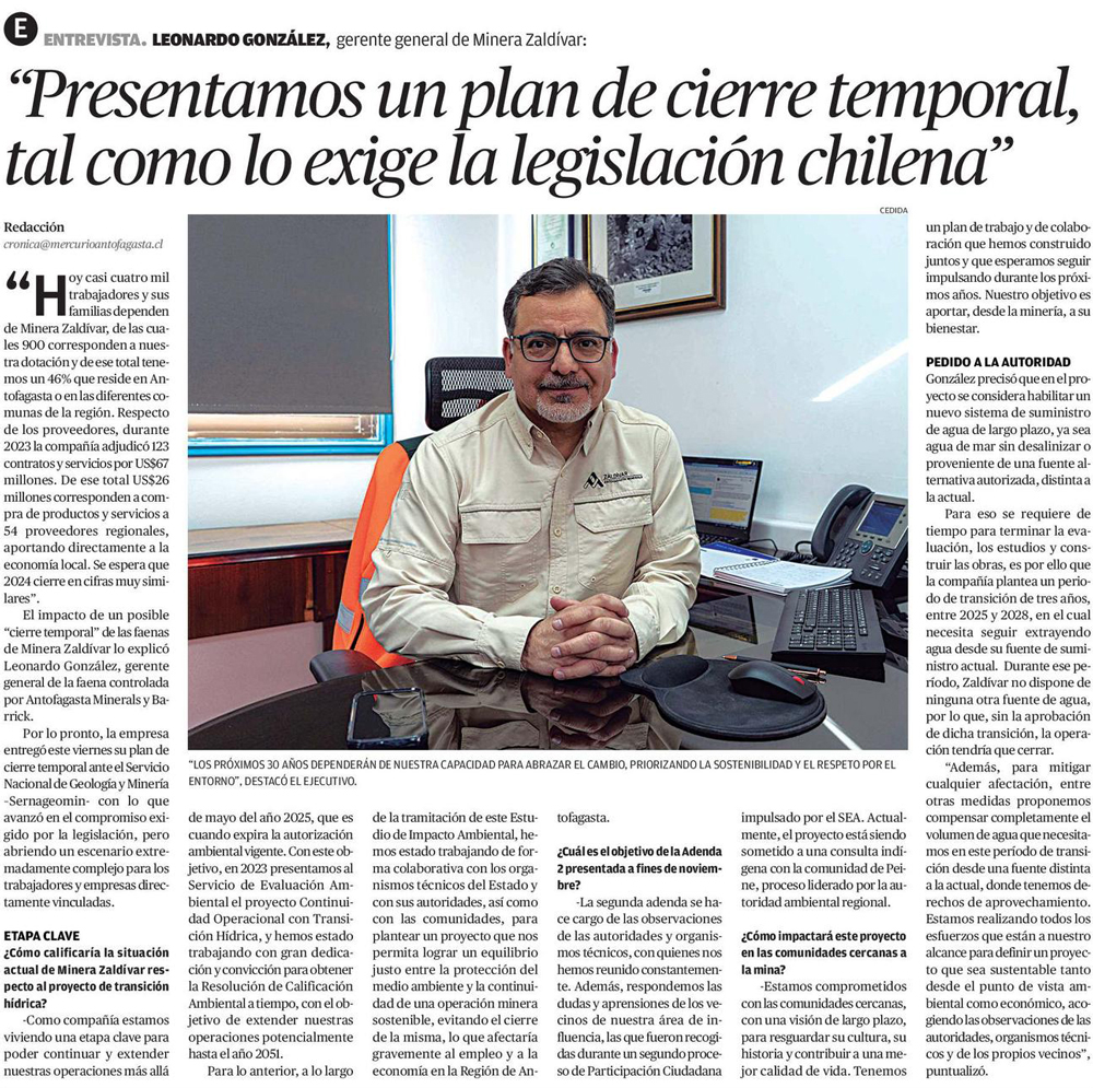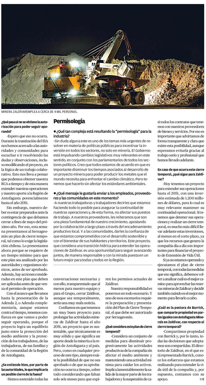 Antofagasta Minerals presentará plan de cierre para Minera Zaldívar: "Esperamos que no sea necesario implementarlo" - (Pulso)