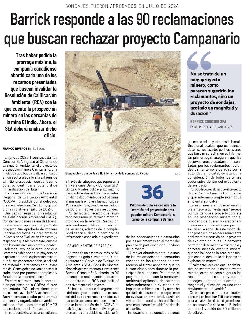 Barrick iniciará nuevos sondajes en la cordillera de Alto del Carmen - (El Diario de Atacama)