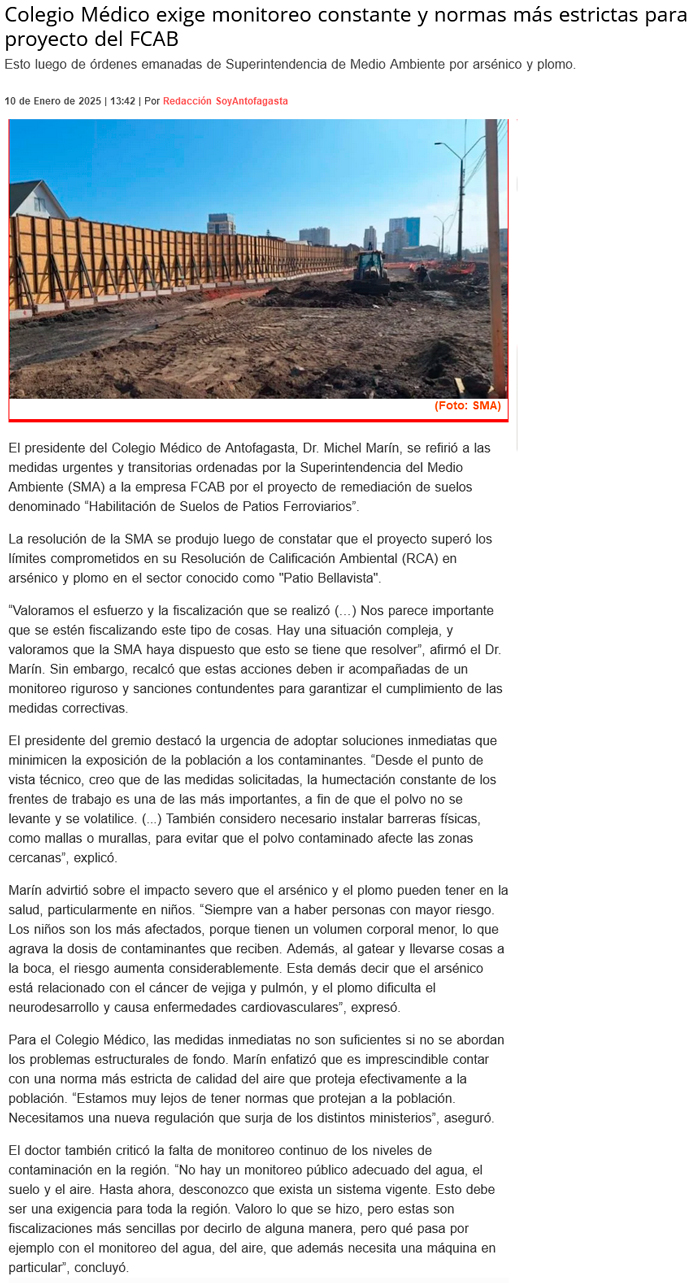 SMA ordena medidas al FCAB por superar concentración de arsénico y plomo en proyecto de remediación en Antofagasta - (timeline)