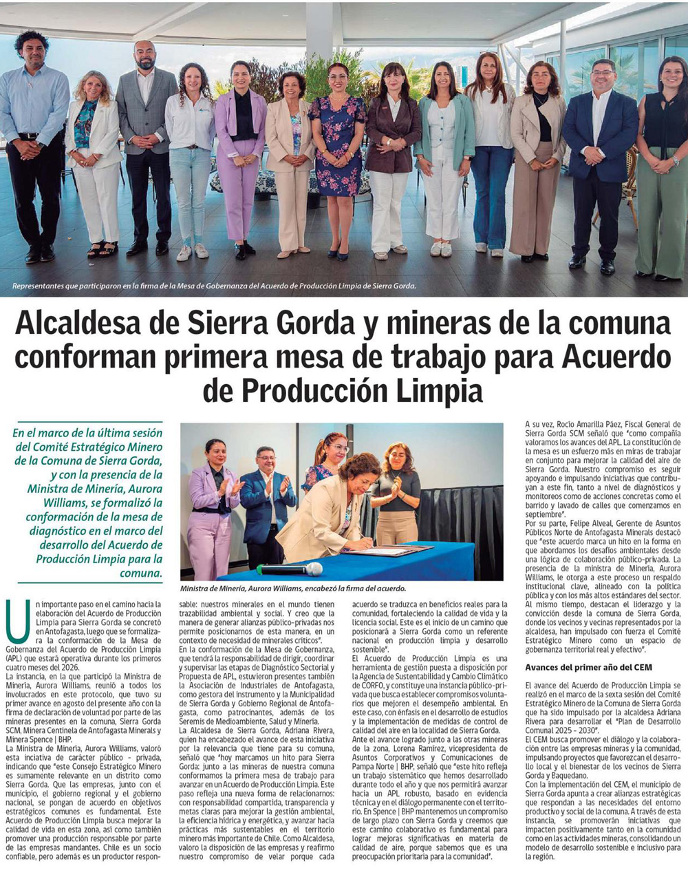 Alcaldesa de Sierra Gorda y mineras de la comuna conforman primera mesa de Trabajo para Acuerdo de Producción Limpia - (El Mercurio de Calama)