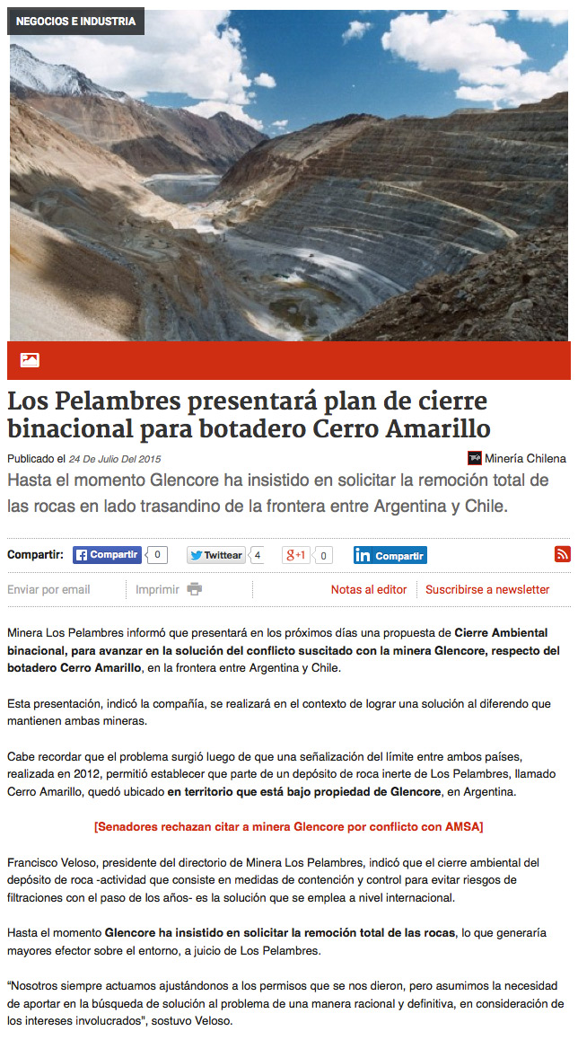 Pelambres presenta plan para terminar conflicto con Glencore - (El Mercurio de Santiago)