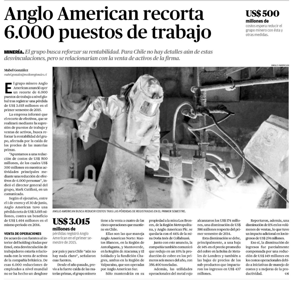 Anglo American recorta 6.000 puestos de trabajo - (El Mercurio de Antofagasta)