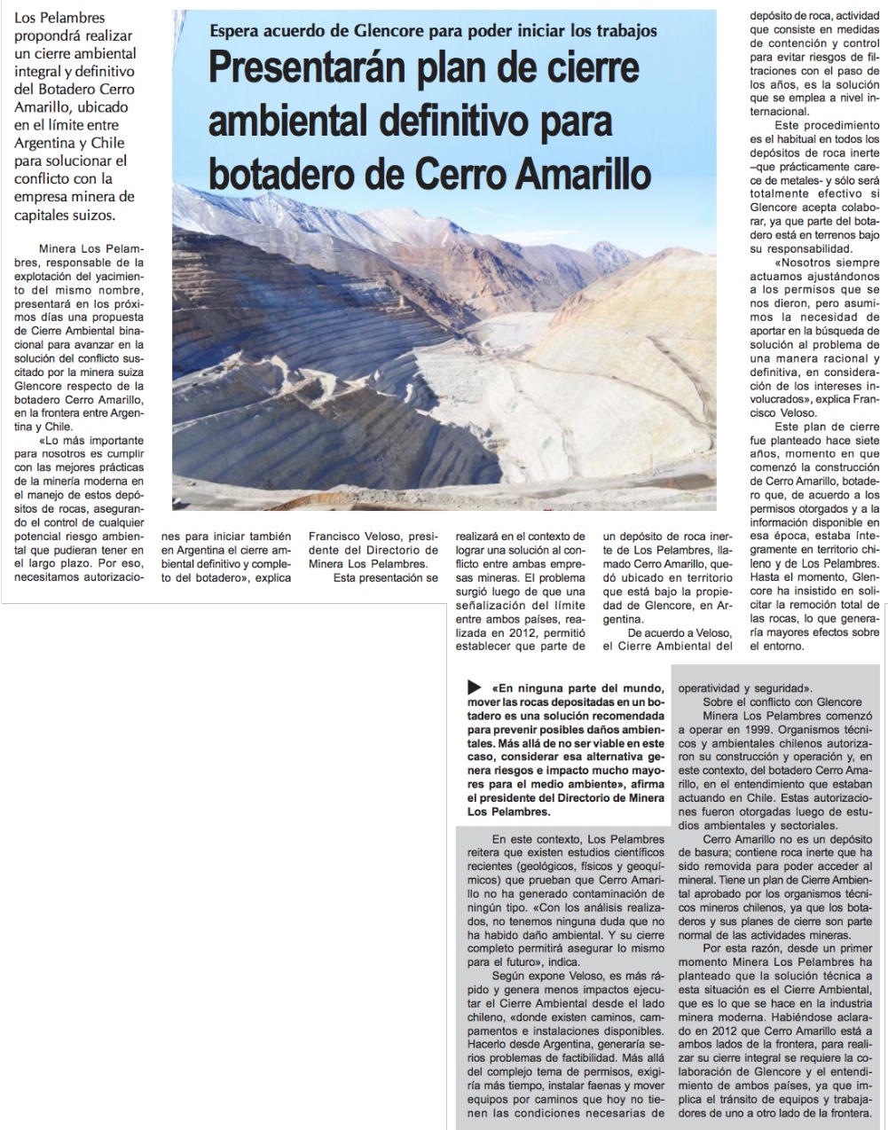 Los Pelambres presentará plan de cierre binacional para botadero Cerro Amarillo - (mch.cl)