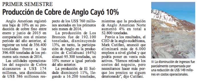 Anglo American recorta 6.000 puestos de trabajo - (El Mercurio de Antofagasta)