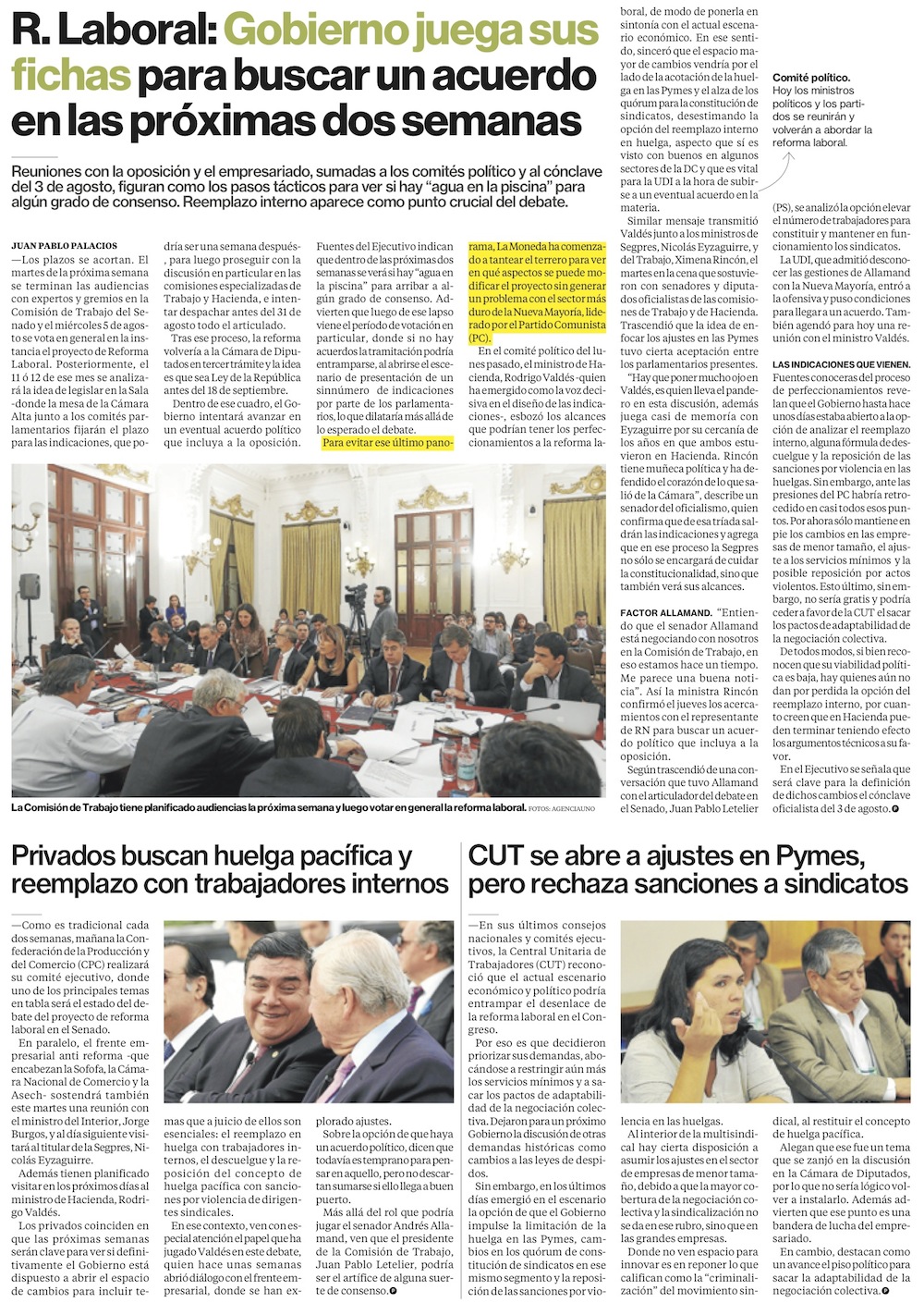 El aterrizaje de Hacienda en la reforma laboral - (La Tercera)