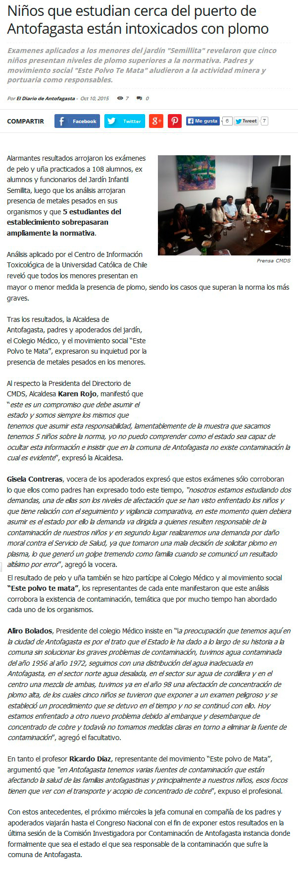Apoderados de niños con plomo viajarán a la Cámara - (El Mercurio de Antofagasta)