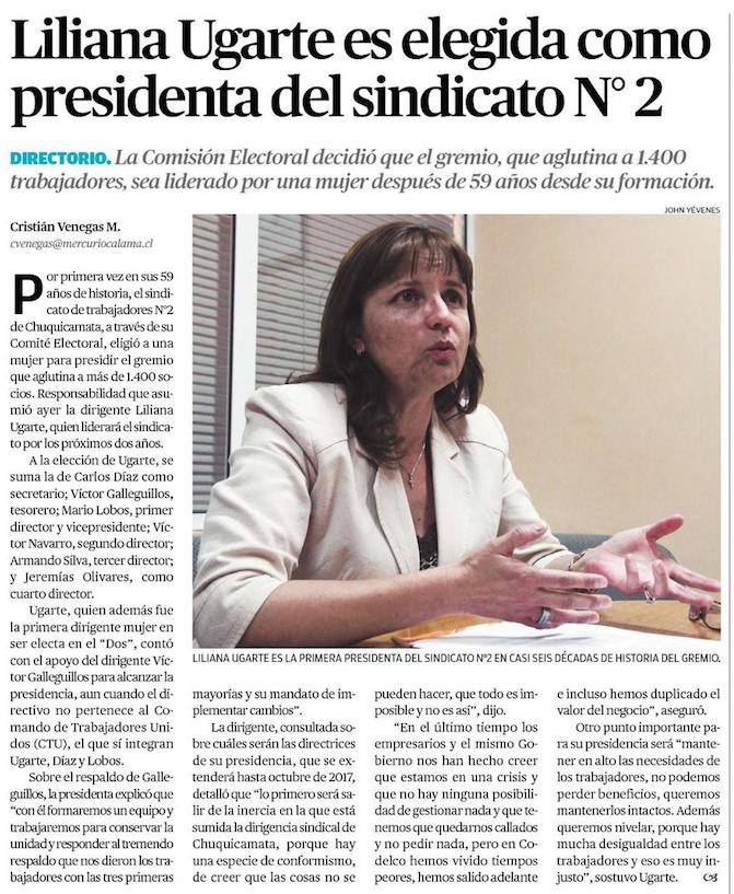 Una mujer dirigirá por primera vez sindicato de Chuqui - (El Mercurio de Antofagasta)