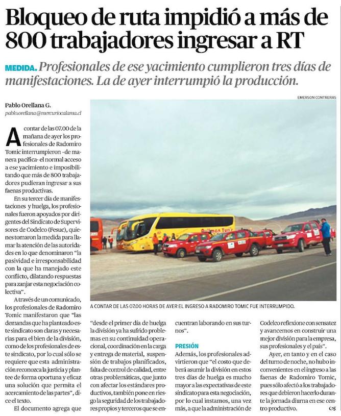 Dirigentes de división RT fueron desalojados - (El Mercurio de Calama)