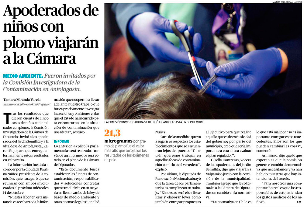 Cinco niños registran plomo sobre la norma en los exámenes de pelo - (El Mercurio de Antofagasta)