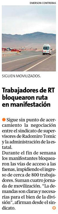 Dirigentes de división RT fueron desalojados - (El Mercurio de Calama)