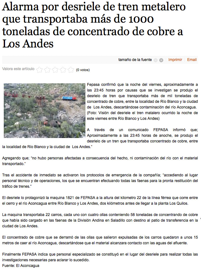 Zona donde descarriló tren con concentrado de cobre debe limpiarse antes de lluvias anunciadas para el martes - (aminera)