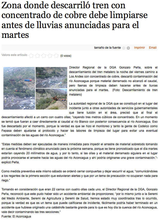 Alarma por desriele de tren metalero que transportaba más de 1000 toneladas de concentrado de cobre a Los Andes - (aminera)