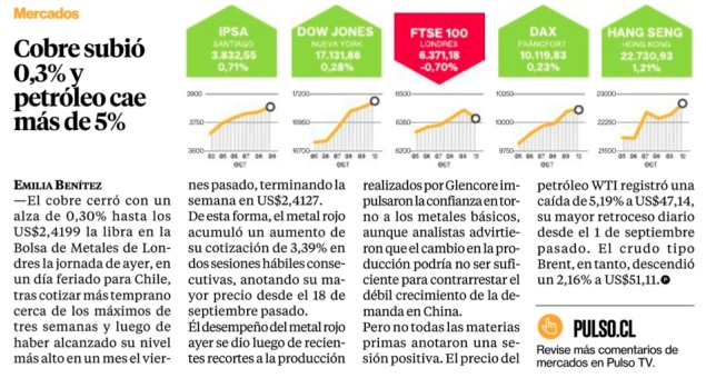 Recortes de producción impulsan alza del cobre - (El Mercurio de Santiago)