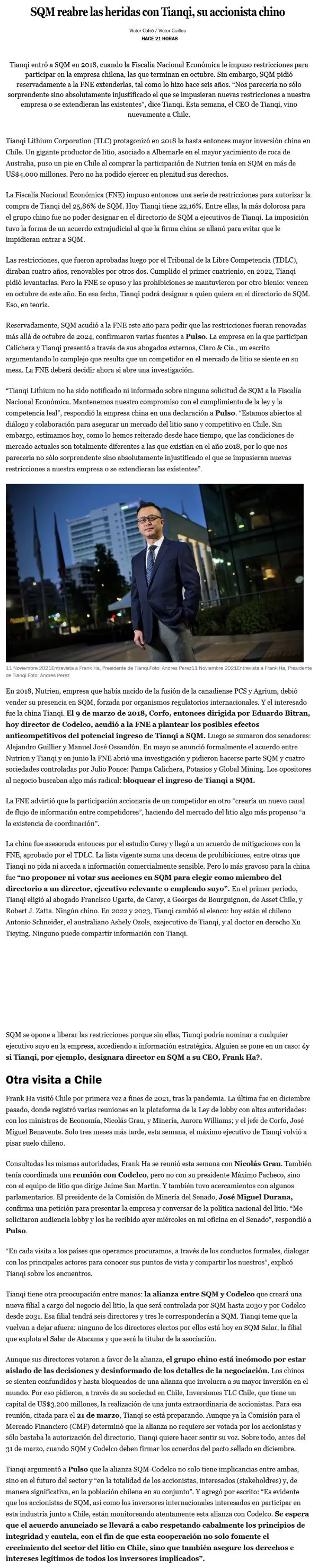 SQM abre un nuevo foco de conflicto con su socio chino - (Pulso)