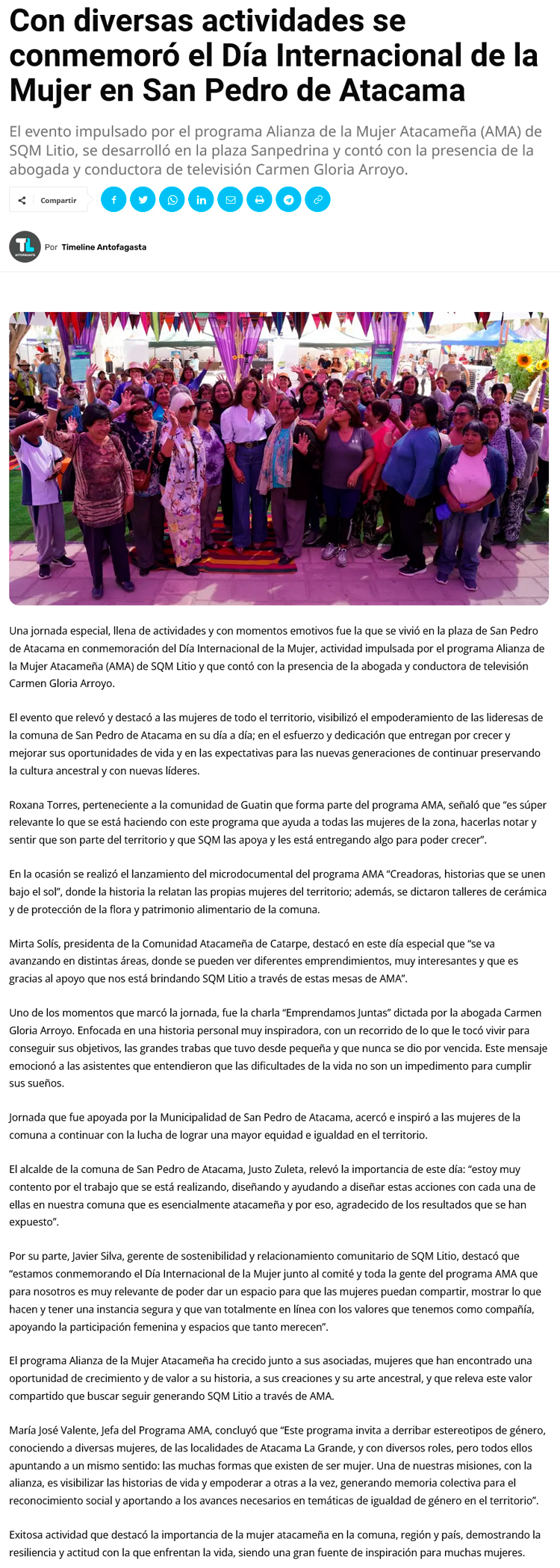 Con diversas actividades se conmemoró el Día Internacional de la Mujer en San Pedro de Atacama - (enfoquenoticias.cl)