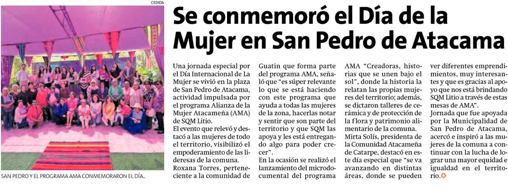 Con diversas actividades se conmemoró el Día Internacional de la Mujer en San Pedro de Atacama - (enfoquenoticias.cl)