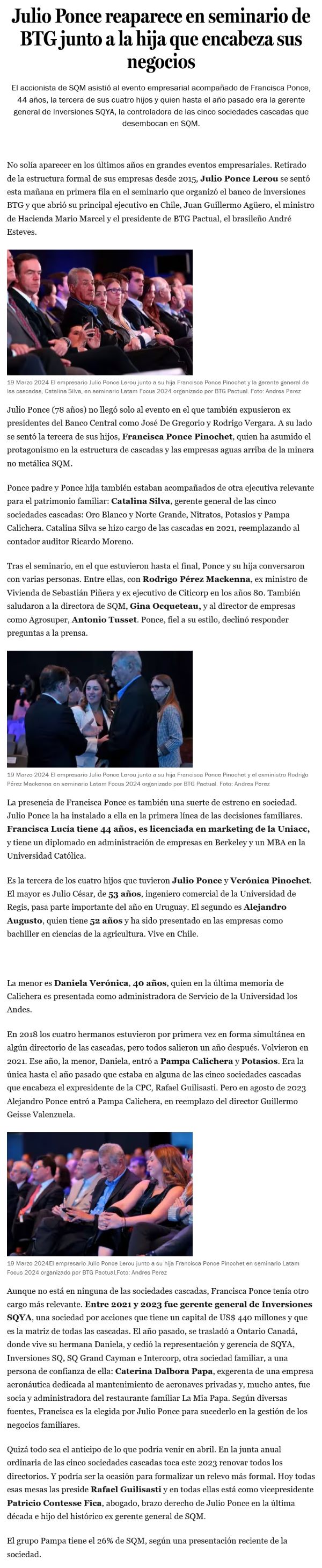 Julio Ponce reaparece en seminario de BTG junto a la hija que encabeza sus negocios - (Pulso)