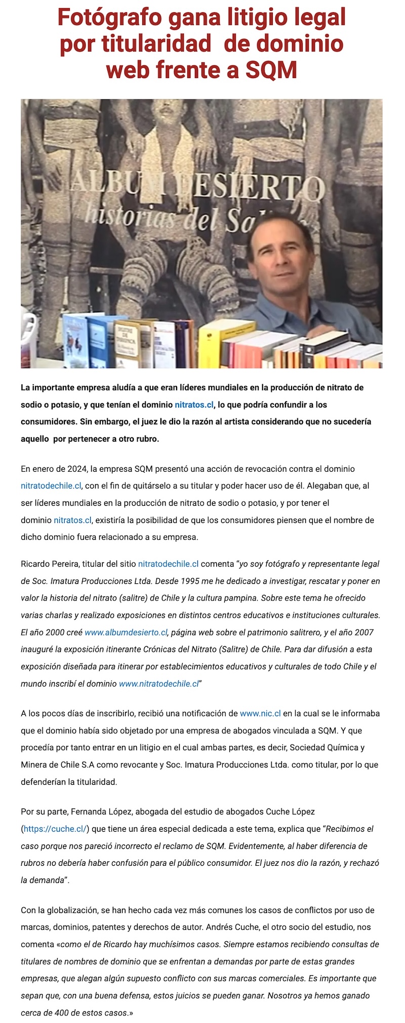 Fotógrafo gana litigio a SQM por titularidad de dominio web - (elregionalista)