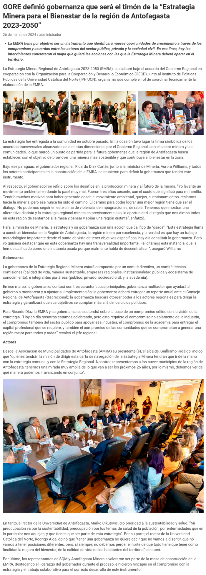 GORE definió gobernanza que será el timón de la “Estrategia Minera para el Bienestar de la región de Antofagasta 2023-2050” - (madero.cl)