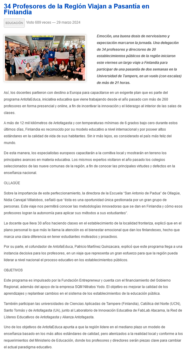 34 profesores de la región viajan a pasantía en Finlandia - (antofagastanoticias)