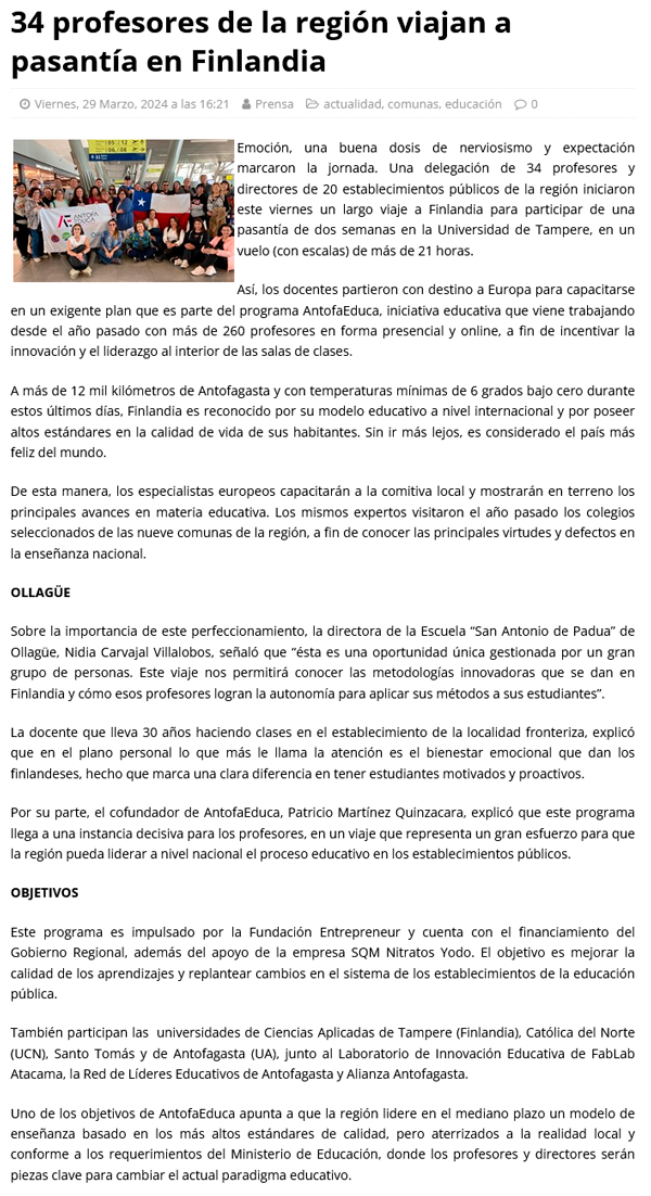 34 profesores de la región viajan a pasantía en Finlandia - (regionesnoticias.cl)