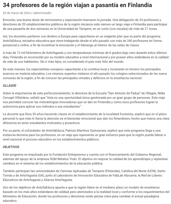 34 profesores de la región viajan a pasantía en Finlandia - (regionesnoticias.cl)