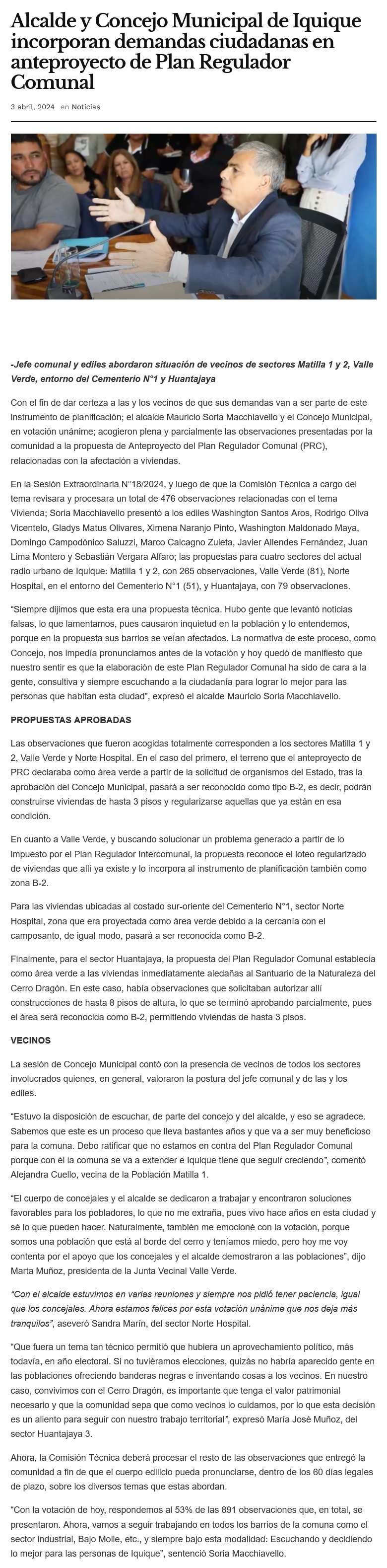 Alcalde Soria y Concejo Municipal incorporan demandas ciudadanas en anteproyecto de Plan Regulador Comunal, abordando situación de vecinos - (edicioncero)