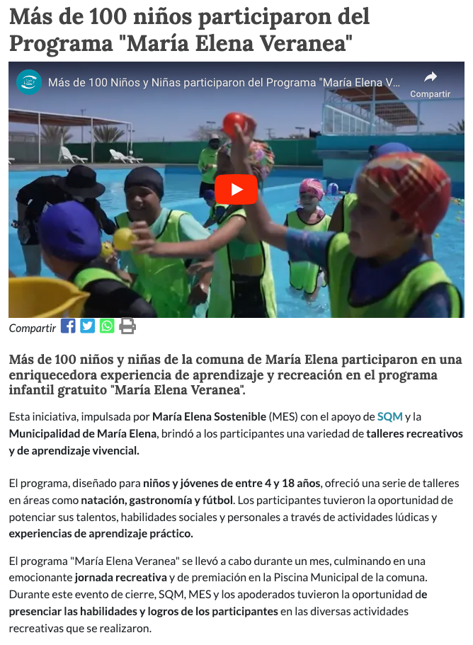 https://www.cualestuhuella.cl/noticia/responsabilidad-social/2024/04/mas-de-100-ninos-participaron-del-programa-maria-elena-veranea - cualestuhuella.cl - Jueves, 4 de Abril de 2024