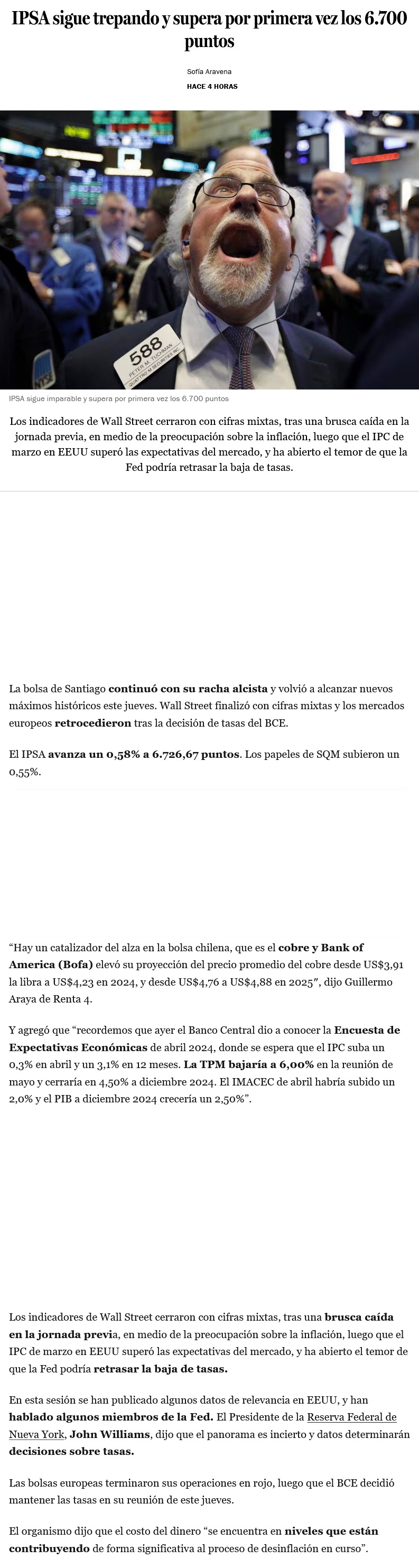 IPSA supera los 6.700 puntos: cuánto de su nivel récord se explica por las mejores perspectivas para la economía chilena en 2024 - (Pulso)