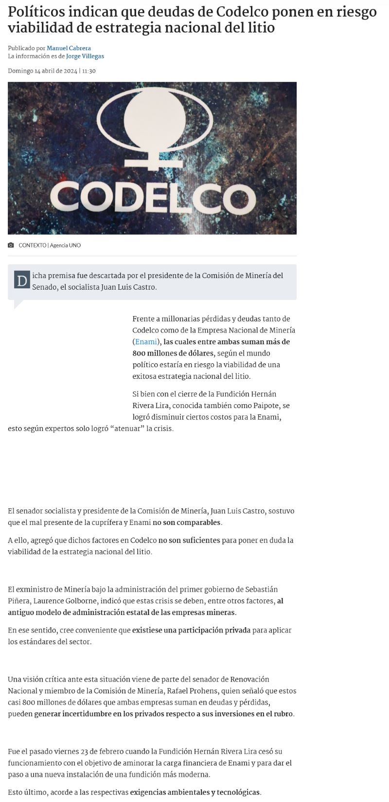 Chile: deudas de Codelco y Enami pondrían en riesgo viabilidad de estrategia nacional del litio - (americaeconomia online)